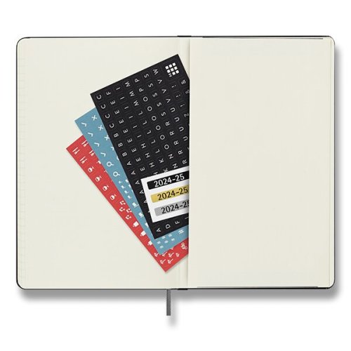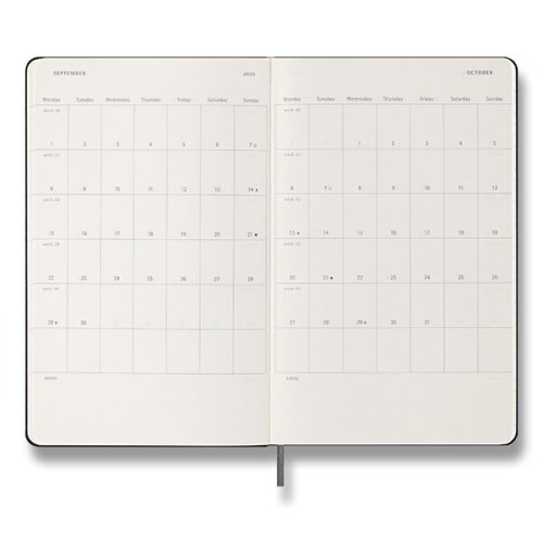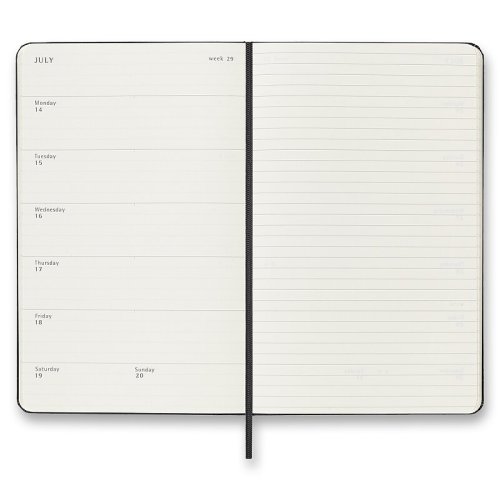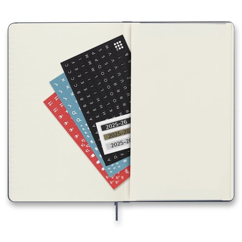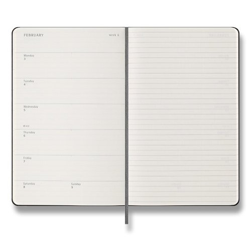 Gramáž papiera 70 g/m², neobsahuje kyseliny. Papier má slonovinovú farbu a je vyrobený z FSC certifikovaného dreva., Rozmer: 13 x 21 cm, 104 listov., Veľkosti diárov:, * XS - 6,5 x 1,5 cm, * S - 9 x 14 cm (A6), * L - 13 x 21 cm (A5), * XL archov tematických samolepiek., Diár je v anglickom jazyku., , Tip: K diáru by ste mohli potrebovať aj písacie potreby Moleskine., O ZNAČKE MOLESKINE:, Príbeh značky MOLESKINE sa začal písať už v 19. storočí vo Francúzsku, kedy vznikol produkt s veľkou tradíciou. Zápisníky MOLESKINE si obľúbili významní umelci a myslitelia ako Vincent van, Gogh, Pablo Picasso či Ernest Hemingway. Dnes je značka Moleskine synonymom pre kultúru, cestovanie, kreativitu a osobnú identitu, a to ako v reálnom svete, tak aj vo svete digitálnom., MOLESKINE je kreatívnym a nápaditým partnerom pre dnešnú dobu.