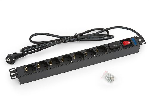 19',7xDE zásuvka, vypínač, bleskoistka, 3x1.5mm 2m kábel CZ-DE, RAL9005 FLEXRAB-PD-X12-A1