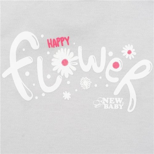 2-dielna súpravička českej značky New Baby Happy Flower pre bábätká. Obsahuje tričko a tepláčiky. Tričko zdobí nápis Happy flower a šmrncovné volánikové rukávy. Zapínanie na cvoček pri krčku na zadnej strane. Tepláčiky majú širší lem, sú zúžené na nohavičkách s lemom a sú celopotlačené kvetinkami. Zloženie: 100% bavlna.