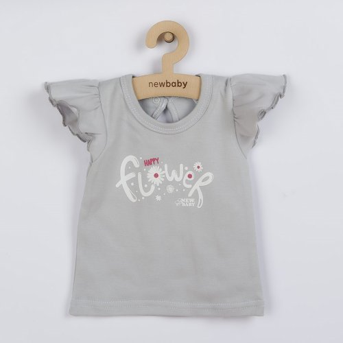 2-dielna súpravička českej značky New Baby Happy Flower pre bábätká. Obsahuje tričko a tepláčiky. Tričko zdobí nápis Happy flower a šmrncovné volánikové rukávy. Zapínanie na cvoček pri krčku na zadnej strane. Tepláčiky majú širší lem, sú zúžené na nohavičkách s lemom a sú celopotlačené kvetinkami. Zloženie: 100% bavlna.