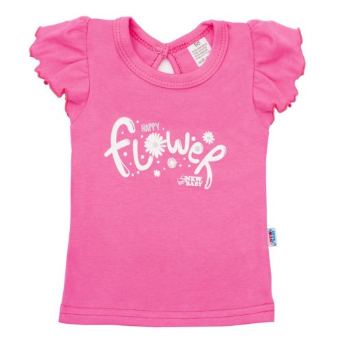 2-dielna súpravička českej značky New Baby Happy Flower pre bábätká. Obsahuje tričko a tepláčiky. Tričko zdobí nápis Happy flower a šmrncovné volánikové rukávy. Zapínanie na cvoček pri krčku na zadnej strane. Tepláčiky majú širší lem, sú zúžené na nohavičkách s lemom a sú celopotlačené kvetinkami. Zloženie: 100% bavlna.