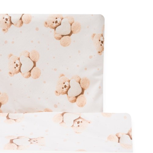 Detská 2-dielna súprava do postieľky New Baby Love Teddy Bear je produktom českej značky New Baby. Súprava je vyrobená zo 100% bavlny. Kvalitné prevedenie a nádherný dětský motív. Obsahuje obliečky na vankúšik cca 40x60 cm + obliečky na perinku cca 120x90 cm. Materiál 100% bavlna.<BR>Tieto výrobky sú bezpečné, pretože:<BR>- prírodná bavlna nespôsobuje odreniny a podráždenie, pretože neobsahuje formaldehydy a ďalšie prvky, ktoré dojčatám škodia<BR>- nestráca farbu a nezafarbuje oblečenie<BR>- ponúkané vzory sú príjemné na pohľad a majú upokojenie tzv. "bezpečné zipsy" bez voľne visiacej koncovky, ktorú by mohlo dieťa odtrhnúť a prehltnúť<BR>- nie sú použité žiadne gombíky ani žiadne ďalšie plastové alebo oceľové časti, ktoré môžu byť pre Vaše dieťa nebezpečné<BR>- materiál, ktorý je používaný pre výplne vankúšov a prikrývok, je 100% protiorganism, žiadne mikro, OEKO-TEX ŠTANDARD 100.