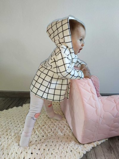 2-dielny komplet pre dievčatko českej značky New Baby Cool Girls. Komplet sa skladá z mikinky a sukienky. Mikinku Áčkového strihu zdobí praktická kapucňa podšitá bavlnenou podšívkou a stále moderný kockovaný vzor. Zapínanie na cvočky po celej dĺžke. Kolesový strih sukienky zdobí širší pás s gumičkou. Krásny komplet do šatníka malých parádníc. Materiál: 95% bavlna, 5% elastan.