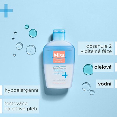Odličovač očí obsahuje dve viditeľné fázy: olejovú a vodnú, ktoré rozpúšťajú a odstraňujú make-up bez nutnosti drhnutia. Je ideálny pre citlivé oči a viečka, dokonale odstraňuje aj vodeodolný make-up.
