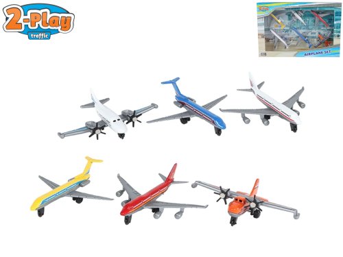 2-Play Traffic lietadlo dopravné 7-10,5 cm kov voľný chod 6 ks