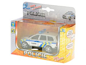 Kovové policajné auto o veľkosti 11 cm po natiahnutí dozadu (pull back) uháňa na pomoc a zároveň toto oznamuje hlásením v slovenskom jazyku a varovnými svetelnými signálmi. Na každom autíčku je potom uvedené aj telefónne číslo 158, ktoré sa v budúcnosti môže hodiť každému dieťaťu.