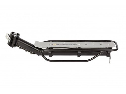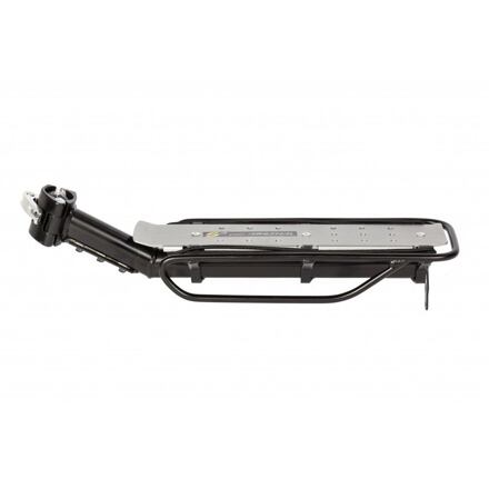 Zadný univerzálny nosič 209 na sedlovku využijete na prevoz ľahších nákladov a to najmä v prípadoch, keď nie je možné pripevniť štandardný nosič k rámu kolesa. Vhodný je napríklad pre celoodpružené kolesá, kolesá s atypickou zadnou stavbou alebo modely bez návarkov a závitov pre zadný nosič. Telo nosiča je zvarené z hliníkovej zliatiny AW 6061. Postranice sú neodnímateľné. K sedlovke (s priemerom 25,4-32 mm) sa nosič uchytí pomocou delenej objímky a rýchloupináku. Maximálna nosnosť nosiča je 8 kg. Nosič je vhodný pre tašky Sport Arsenal Art č.505 a 450, na nosič je možné použiť aj tašky iných značiek, plnú kompatibilitu však nemožno úplne zaručiť. Výrobok prešiel skúškami na špeciálnom testovacom stroji podľa noriem DIN. Upozornenie: nosič nie je vhodný na sedlovky z uhlíkových kompozitov! Parametre: -rozmer (dx š xv): 33,5 x 11,5 x 5,5 cm -hmotnosť: 710 g -materiál: hliník -nosnosť: 8 kg -na sedlovku s priemerom 25,4-32 mm