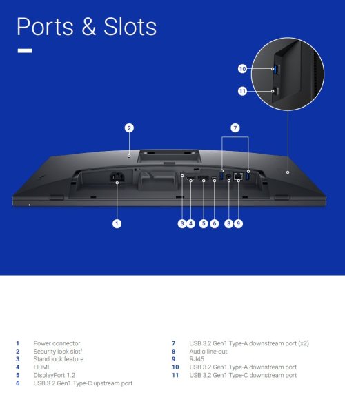WHAT'S INCLUDED: 1x Monitor panel 1x Stand riser 1x Stand base 1x Cable cover 1x Power cable 1x DP 1.2 cable, DP-to-DP (1.8m) 1x USB 3.2 Gen1 Type C-to-C upstream cable (1.8m) 1x USB 3.2 Gen1 Type C-to-A upstream cable (1.8m) 1x Quick setup guide 1x Safety, Environmental, and Regulatory Information