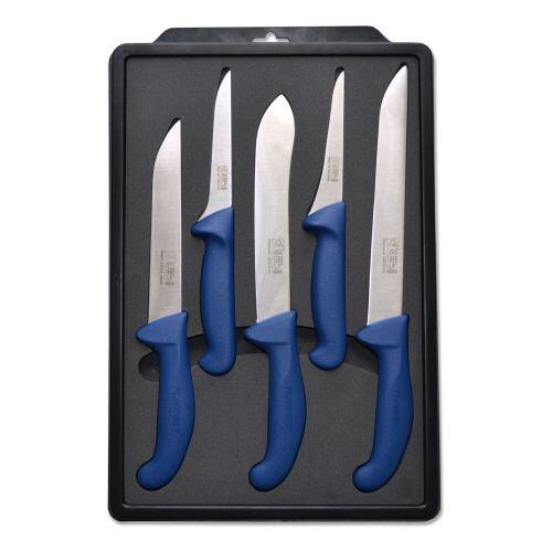 Špičková sada obsahuje 5 profesionálnych mäsiarskych nožov, ktoré sú navrhnuté a testované pre náročné profesionálne použitie, zvládnu aj priemyselnú výrobu.