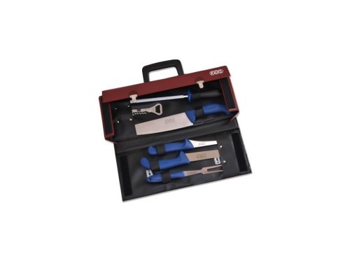 sada obsahuje: 1655 nôž mäsiarsky vykosťovací 5 1670 nôž mäsiarsky 7 2643 nôž porcovací 10 3022 vidlica kuchynská 3227 ocieľka 3445 otvárač čašnícky