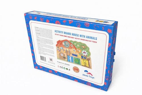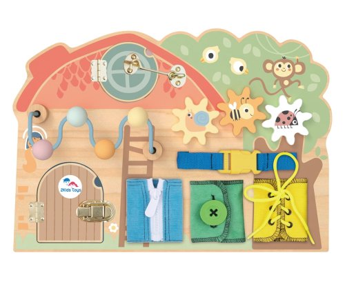Od zámku k šnúrkam! Táto hracia doska s obrázkami zvieratiek prináša množstvo zábavy, vďaka ktorej bude môcť Vaše dieťa rozvíjať svoju zručnosť, zvedavosť a najmä jemnú motoriku. Zámky, labyrint, zips, šnúrky a ďalšie aktivity dávajú dieťaťu možnosť precvičovať rôzne viazanie, spájanie, otáčanie či otváranie a pripraviť sa tak na úkony každodenného života. Hracia doska je vyrobená z dreva s certifikáciou FSC®. Hlavné vlastnosti: podporuje nezávislosť, jemnú motoriku a koordináciu ruka-okopodnecuje kreatívne myslenie a predstavivostsenzorická stimuláciaedukácia skrze hruvyrobené z dreva s certifikáciou FSC® Značka a certifikát FSC® (Forest Stewardship Council) zaručuje, že drevo, z ktorého bol produkt vyrobený, nebolo vyťažené nelegálne a blízkym spôsobom, v ktorom sú dodržiavané prísne environmentálne a sociálne požiadavky. Značka FSC® na výrobku znamená, že svojim nákupom pomáhate chrániť lesy a podporujete šetrné, zodpovedné či prírode blízke hospodárenie, vďaka ktorému sú naše lesy stabilnejšie, zdravšie, majú prirodzenú druhovú skladbu a lepšie odolávajú negatívnym následkom klimatických zmien.