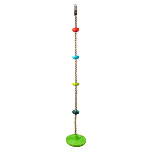 Detské šplhacie lano s farebnými diskami a zakončené okrúhlou hojdačkou z plastu . Nevyhnutný pomocník pre objaviteľov vonkajšej zábavy na detskom ihrisku alebo k domčeku na strome. Hlavné vlastnosti: nosnosť 100 kg pevné lano s hrúbkou 2,6 cm
