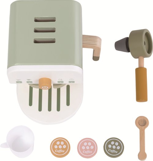 Sada kávovaru s doplnkami pre všetky malé baristky a baristov a budúcich milovníkov kávy. Chcete espresso alebo cappuccino? Drevený pákový kávovar s realistickými detailmi má tri vymeniteľné kapsule, hrnček, lyžičku a samozrejme páku na kávu, ktorá sa dá zasunúť priamo do prístroja. Kapsule si deti môžu uložiť do výrezov na hornej strane ká vovaru . Hračka podporuje predstavivú hru, rozvíja jemnú motoriku, koordináciu pohybov i sociálne zručnosti. Deti sa môžu hrať samy alebo obsluhovať hostí vo svojej vlastnej kaviarni. Príjemné pastelové a zemité odtiene farieb spolu s kvalitným prírodným drevom robia z tejto hračky krásny doplnok každej izbičky. Obsah balenia: kávovarpáka na kávu 3 kapsulyľahrnečeklžička Hlavné vlastnosti: pákový kávovar s príslušenstvomrealistický dizajn a funkčné detailypodporuje predstavivú hrurozvíja jemnú motoriku a koordináciuprírodné drevo v kombinácii so zemitými tónmi ideálny doplnok do detskej kuchynkyvhodnej pre deti od 2 rokov