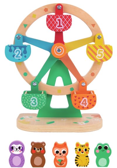 Užite si veľa zábavy na púti! Ktoré zvieratko sa bude točiť ako prvé? Leňoch, medvedík, veverička, tigrík alebo žabka? Tento kolotoč je nielen zábavný, ale naučí deti počítať od 1 do 5, rozpoznávať farby, pomenovať zvieratká. Je vyrobený z vysoko kvalitného dreva s certifikáciou FSC® a opatrený zdravotne nezávadným náterom. Vďaka kvalitnému spracovaniu a kombinácii žiarivých farieb s farbou prírodného dreva bude krásnym doplnkom každej detskej izbičky alebo herne. Hlavné vlastnosti: rozvíja zručnosťučí rozpoznávať farby, čísla a zvieratkávyrobené z dreva s certifikáciou FSC® od 2 rokov veku Značka a certifikát FSC® (Forest Stewardship Council) zaručuje, že drevo, z ktorého bol produkt vyrobený, nebolo vyťažené nelegálne a pochádza z lesov obhospodarovaných a šetrných či prírode blízkym. Značka FSC® na výrobku znamená, že svojim nákupom pomáhate chrániť lesy a podporujete šetrné, zodpovedné či prírode blízke hospodárenie, vďaka ktorému sú naše lesy stabilnejšie, zdravšie, majú prirodzenú druhovú skladbu a lepšie odolávajú negatívnym následkom klimatických zmien.
