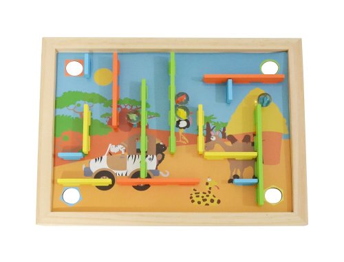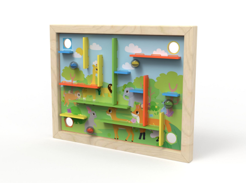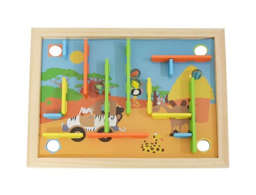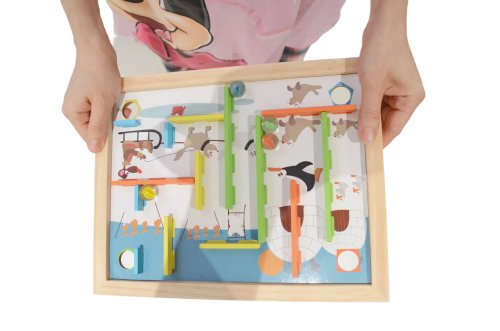 Máte radi hlavolamy a hádanky? Zaujmú Vás rôzne bludiská a labyrinty? Potom je pre Vás tento kreatívny naklápací labyrint tým pravým. Umiestnite drevené prekážky do správnych otvorov na doske podľa farieb, alebo si utvorte dráhu vlastnú a hra môže začať. Položte guličky na ľubovoľné miesto a nakláňaním základnej hracej plochy sa ich snažte umiestniť do určených otvorov. Alebo môžete dosiahnuť stanovený cieľ tým, že budete jednotlivé guličky cvrnkať do otvorov. Hlavné vlastnosti: • obsahuje 22 dielov • rozvíja jemnú motoriku a zručnosť • zlepšuje obratnosť a koncentráciu