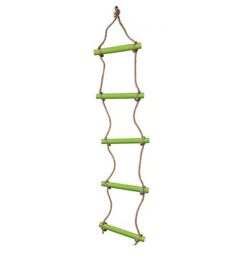 Lanový rebrík s 5 plastovými priečkami v zelenej farbe. Nevyhnutný pomocník pre objaviteľov vonkajšej zábavy na detskom ihrisku alebo k domčeku na strome. Hlavné vlastnosti: nosnosť: 80 kg dĺžka rebríka je 160 cm