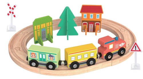 Zostavte koľaje, zapojte vagóniky za lokomotívu a môžete vyraziť na výlet! S touto farebnou vlakovou súpravou si deti užijú množstvo zábavy. Okrem koľají a vláčika je súčasťou balenia aj strom a dva domy. Vagóniky sú veľkosťou vhodné pre malé detské ručičky a zapoja sa jednoducho pomocou magnetu. Hračka inšpiruje k rozprávaniu príbehov a zlepšuje komunikačné zručnosti. Rozvíja aj zručnosť a jemnú motoriku. Je vyrobená z kvalitného dreva z certifikácií FSC®. Hlavné vlastnosti: 23 dielov rozvíja zručnosť a jemnú motoriku zlepšuje komunikačné schopnosti vyrobené z dreva s certifikáciou FSC® vhodné od 2 rokov veku prísne environmentálne a sociálne požiadavky. Značka FSC® na výrobku znamená, že svojim nákupom pomáhate chrániť lesy a podporujete šetrné, zodpovedné či prírode blízke hospodárenie, vďaka ktorému sú naše lesy stabilnejšie, zdravšie, majú prirodzenú druhovú skladbu a lepšie odolávajú negatívnym následkom klimatických zmien.