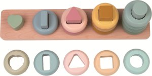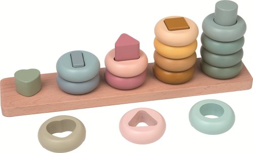 Táto múdra nasadzovačka zaujme nielen svojou funkciou, ale aj krásnym prírodným dizajnom v kombinácii s jemnými farbami. Na päť drevených tyčiek rôzneho profilu, od kolieska cez srdiečko až po štvorec alebo trojuholník deti postupne nasadzujú farebné krúžky, ktoré zodpovedajú tvaru tyčky. Každý stĺpec má iný počet krúžkov a iný stredový výrez, takže deti trénujú koordináciu ruka-oko a jemnú motoriku, ale aj rozpoznávanie farieb, tvarov a veľkostí. Príjemné pastelové a zemité farby spolu s kvalitným prírodným drevom robia z tejto hračky krásny doplnok každej izbičky . Hlavné vlastnosti: nasadzovačka s piatimi tyčami rôzne profily stredov rozvíja jemnú motoriku, logické myslenie a priestorové vnímanie podporuje učenie tvarov a farieb vyrobené z kvalitného dreva jemné prírodné a zemité farby vhodné pre deti od 1 roka