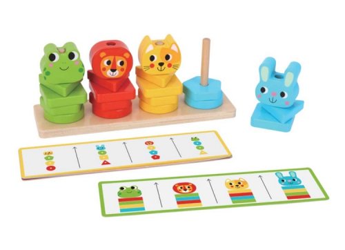 Jeden, dva, tri, štyri, päť - poskladajte drevené dieliky na seba a vytvorte si kamaráta! Táto rozkošná stohovacia hra obsahuje 4 zvieratká (žabu, leva, mačku a králika), ktorých dieliky môžete na tyčiach ľubovoľne kombinovať. Výrobok má roztomilý design v klasických pestrých farbách a je skvelým pomocníkom pri rozvoji zručnosti a rozpoznávania tvarov. V sade sú k dispozícii kartičky, podľa ktorých sa vaše ratolesti môžu riadiť. Hlavné vlastnosti: vyrobené z FSC® drevamotorická vzdelávacia hračkatrénuje koordináciu ruka-okoideálna pre rozvoj kreativity a obratnosti Značka a certifikát FSC® (Forest Stewardship Council) zaručuje, že drevo, z ktorého bol produkt vyrobený, nebolo vyťažené nelegálne a pochádza z lesov obhospodarovaných šetrným či prírode blízkym spôsobom, v ktorom sú dodržiavané prísne environmentálne a sociálne požiadavky. Značka FSC® na výrobku znamená, že svojim nákupom pomáhate chrániť lesy a podporujete šetrné, zodpovedné či prírode blízke hospodárenie, vďaka ktorému sú naše lesy stabilnejšie, zdravšie, majú prirodzenú druhovú skladbu a lepšie odolávajú negatívnym následkom klimatických zmien.