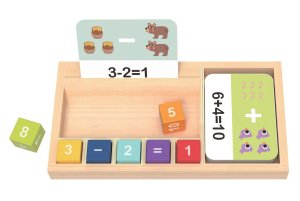 Koľko nádob s medom zostane, keď sa do nich pustia dva maškrtné medvede? Naučte počítať svoje deti tie najrôznejšie matematické úlohy - a to hravo! Táto sada obsahuje kartičky s príkladmi, kocky a praktický úložný box. Vďaka vizuálnemu spracovaniu kartičiek si deti môžu lepšie urobiť predstavu o číslach a kreatívne o nich uvažovať. Cieľom hračky je predovšetkým premeniť učenie na zábavu a vyvinúť tak u najmenších kladný vzťah k učeniu. Hlavné vlastnosti: • trénuje sčítanie a odčítanie • mení učenie na zábavu