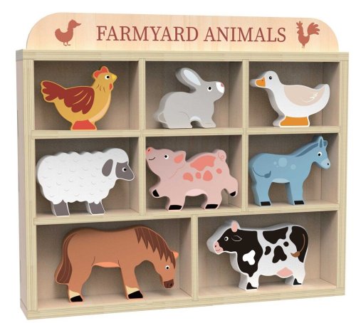 Čo by to bolo za farmu bez zvieratiek? Táto sada obsahuje figúrky 8 zvieratiek z FSC® dreva - sliepku, zajačika, hus, ovcu, prasiatko, oslíka, koníka a kravičku. Malým farmárom prináša skvelý spôsob, ako ich naučiť o zvieratkách, ako žijú a ako sa o ne starať. Deti majú možnosť vytvoriť si vlastné kreatívne scény a zapojiť tak fantáziu. Rozvíja koordináciu ruka-oko, jemnú motoriku a zručnosť. Rozmery balenia: 29,9 x 25,9 x 4,6 cm Vek: 3+ Materiál: FSC® drevo Obsahuje: 9 dielov
