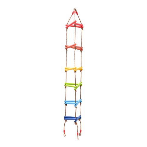 Pestrofarebný plastový rebrík s tromi stranami ponúka prevedenie odolné voči poveternostným vplyvom. Je vybavený kovovým okom na zavesenie. Hravo ním spestríte detské ihrisko, alebo domček na strome. Hlavné vlastnosti: nosnosť 80 kg dĺžka priečky 30 cm dĺžka rebríka 210 cm odolné prevedenie