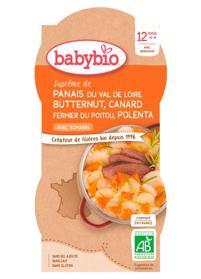 Zloženie: paštrnák* 27 %, voda z varenia, maslová tekvica* 17 %, mrkva* 13 %, francúzske farmárske kačacie mäso* 8,5 %, cibuľa* 5 %, polenta* (kukuričná múka) 4 %, rastlinné oleje* ( repkový* a slnečnicový*), rozmarín*, bez pridanej soli, bez lepku a mlieka. *zložky ekologického poľnohospodárstva Naše receptúry sa môžu vyvíjať. Preto presné info o zložení a nutričných hodnotách vždy nájdete na etikete produktu.