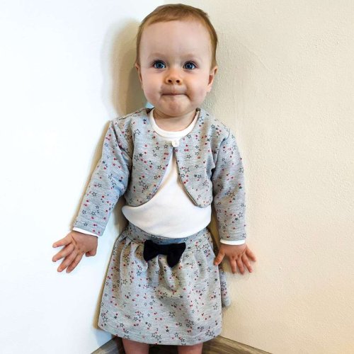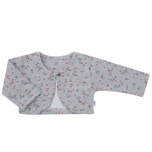Krásna a praktická 3-dielna dievčenská súpravička českej značky New Baby Emma. Súčasťou dojčenskej súpravičky je sukienka, bolerko a čelenka. Roztomilá dievčenská sukienka Áčkového strihu je celopotlačená hviezdičkami so širším lemom v páse s gumičkou. Bolerko s dlhým rukávom má zapínanie na jeden gombík. Štýlová čelenka je široká, pružná a skvele nahradí čiapočku v mierne chladnom počasí. Súpravička je precízne a kvalitne ušitá a je vyrobená z veľmi príjemného materiálu, v ktorom sa bude vaše dievčatko cítiť veľmi pohodlne. Zloženie: 97% bavlna, 3% elastan.