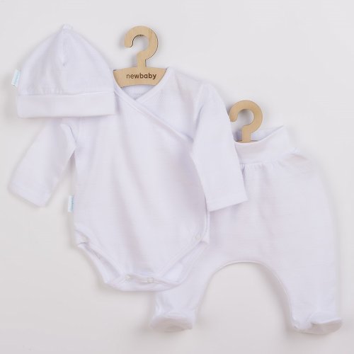 Roztomilá dojčenská 3-dielna súpravička českej značky New Baby I AM pre bábätká. Súpravička je vyrobená z veľmi príjemného, mäkkého a kvalitného materiálu, ktorý je vhodný pre bábätká a je vhodná nielen do pôrodnice. Obsahuje celorozopínacie body s dlhým rukávom, polodupačky a čiapočku. Body má bočné zapínanie po celej dĺžke a medzi nožičkami na cvočky. Polodupačky majú v páse širší pružný lem, ktorý netlačí na bruško bábätka. Čiapočka so širším lemom dobre drží na hlavičke bábätka a nepadá. Je veľmi praktická a netlačí na hlavičku bábätka. Celá súpravička má nový neobyčajný dizajn s atraktívnym vzorom látky. Je navrhnutá s ohľadom na potreby bábätka a je vhodná aj ako milý darček. Súpravička je v praktickej Eko krabičke. Zloženie: 100% bavlna.
