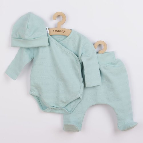 Roztomilá dojčenská 3-dielna súpravička českej značky New Baby I AM pre bábätká. Súpravička je vyrobená z veľmi príjemného, mäkkého a kvalitného materiálu, ktorý je vhodný pre bábätká a je vhodná nielen do pôrodnice. Obsahuje celorozopínacie body s dlhým rukávom, polodupačky a čiapočku. Body má bočné zapínanie po celej dĺžke a medzi nožičkami na cvočky. Polodupačky majú v páse širší pružný lem, ktorý netlačí na bruško bábätka. Čiapočka so širším lemom dobre drží na hlavičke bábätka a nepadá. Je veľmi praktická a netlačí na hlavičku bábätka. Celá súpravička má nový neobyčajný dizajn s atraktívnym vzorom látky. Je navrhnutá s ohľadom na potreby bábätka a je vhodná aj ako milý darček. Súpravička je v praktickej Eko krabičke. Zloženie: 100% bavlna.