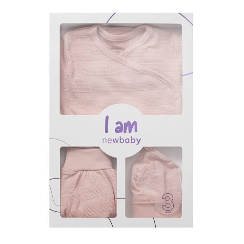 Roztomilá dojčenská 3-dielna súpravička českej značky New Baby I AM pre bábätká. Súpravička je vyrobená z veľmi príjemného, mäkkého a kvalitného materiálu, ktorý je vhodný pre bábätká a je vhodná nielen do pôrodnice. Obsahuje celorozopínacie body s dlhým rukávom, polodupačky a čiapočku. Body má bočné zapínanie po celej dĺžke a medzi nožičkami na cvočky. Polodupačky majú v páse širší pružný lem, ktorý netlačí na bruško bábätka. Čiapočka so širším lemom dobre drží na hlavičke bábätka a nepadá. Je veľmi praktická a netlačí na hlavičku bábätka. Celá súpravička má nový neobyčajný dizajn s atraktívnym vzorom látky. Je navrhnutá s ohľadom na potreby bábätka a je vhodná aj ako milý darček. Súpravička je v praktickej Eko krabičke. Zloženie: 100% bavlna.
