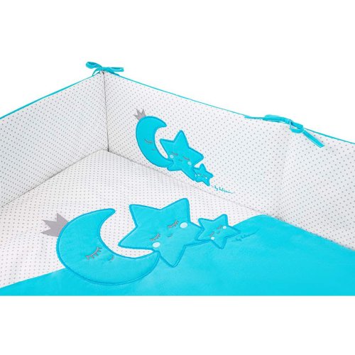 Krásna detská bavlnená 3-dielna súprava do postieľky Belisima Magic Stars pre bábätká. Súprava je zdobená nápisom a obrázkom koruny. Je vyrobená z mäkkého, príjemného materiálu. Obsahuje obliečky na vankúšik cca 40x60 cm, obliečky na perinku cca 90x120 cm a mantinel cca 180 cm. Materiál 100% bavlna.