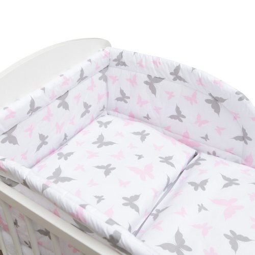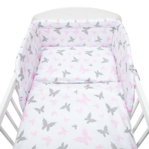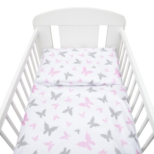 Detská 3-dielna súprava do postieľky New Baby je produktom českej značky. Súprava je zdobená motýlím vzorom a je vyrobená zo 100% bavlny. Obsahuje obliečky na vankúšik cca 40x60 cm + obliečky na perinku cca 100x135 cm a mantinel cca 31x175 cm. Materiál 100% bavlna.