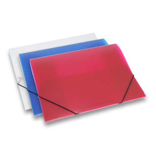 3chlopňové spisové dosky s uzatváracou gumičkou. Vyrobené z pevného transparentného polypropylénu hrúbky 400 mikrónov. Na dokumenty A4.