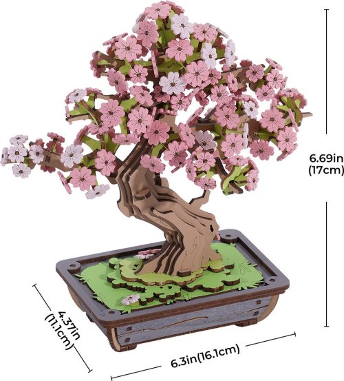 Dá sa veľa práce starať o rastliny, aby neuvädli a dobre sa im darilo. To ale nie je prípad bonsaje japonskej čerešne sakury. Nemusíte ju zalievať, nemá žiadne špeciálne nároky na svetlo a napriek tomu je stále krásna a ozdobí Váš domov či kanceláriu. Každý okvetný lístok je starostlivo tvarovaný tak, aby verne napodobnil nežné biele a ružové kvietky sakury, zatiaľ čo základňa a kmeň zachytávajú podobu skutočnej bonsaje.<br> ; <br> Táto 3D skladačka je skvelým spôsobom, ako si užiť kreatívne a edukatívne hranie a zároveň vytvoriť nádherný model, ktorý sa môže stať netradičným darčekom či ozdobou interiéru. Skladanie skladačky podporuje rozvoj jemnej motoriky, priestorového myslenia a trpezlivosti. Pozvite svoju rodinu alebo priateľov a užite si zábavné tvorenie bez nutnosti použitia lepidla alebo nástrojov. Všetky dieliky sú presne vyrezané, a ľahko do seba zapadnú, aby výsledok bol stabilný a odolný. Skladačka je dodávaná v nezloženom stave, zabalená v krabici s podrobným návodom na zostavenie. 263 presných dielikov doba zostavenia 1,5 hod bez použitia lepidla <br> podrobný návod na zostavenie je súčasťou balenia<br> <br> Rozmery balenia: 23,3 x 15,4 x 3 cm<br> Rozmery po zostavení: 16,1 x 11,1 x 17 cm<br> Vek: 14+<br> Materiál: drevo<br> Počet dielikov: 263<br>