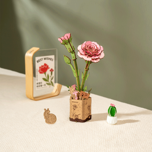 Spestrite si každodenný život farebnými kvetmi a prekvapte svojich blízkych vlastnoručne vyrobeným darčekom. Darovanie kvety je vynikajúci spôsob, ako vyjadriť obdarovanému lásku, obdiv či priateľstvo a popriať mu všetko najlepšie. Každý kvet má svoj význam. Ružový klinček symbolizuje náklonnosť, lásku a priateľstvo. Je tiež často spájaný s vďačnosťou a obdivom. Celkovo vyjadruje pozitívne emócie a silné city.<br> ; <br> Táto 3D skladačka je skvelým spôsobom, ako si užiť kreatívne a edukatívne hranie a zároveň vytvoriť nádherný model kvety, ktorý sa môže stať netradičným darčekom či ozdobou každého interiéru. Skladanie 3D skladačky podporuje rozvoj jemnej motoriky, priestorového myslenia a trpezlivosti. Je to možnosť, ako kombinovať zábavu so vzdelávaním. Všetky dieliky sú presne vyrezané a očíslované a ľahko do seba zapadnú, aby výsledok bol stabilný a odolný. Skladačka je dodávaná v nezloženom stave, zabalená v krabici s podrobným návodom na zostavenie, je možné ju skombinovať s ďalšími kvetinami z tohto radu a vytvoriť veľkú kyticu do vá zy.<br> ; <br> Hlavné vlastnosti:<br> 124 dielikov<br> doba skladania 30 minút<br> nízka obtiažnosť zostavenia bez použitia lepidla<br> výnimočný a realistický vzhľad<br> vhodné pre deti i dospelých<br> rozvíja logické a motorické zručnosti<br> podporuje trpezlivosť detí<br> 5,5 cm <br> Rozmery po zostavení: 12 x 7 x 29 cm<br> Vek: 8+<br> Materiál: drevo<br> Doba zostavenia: 30 min<br> Počet dielikov: 124
