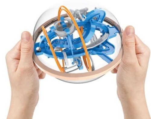 Hlavnou úlohou je urobiť guličku bludiskom. 3D bludisko, v ktorom musíš manévrovať malou guličkou cez náročné prekážky od začiatku (pozícia 1) až do konca (pozícia 80). Plastovú guľu, do ktorej je celý labyrint uzavretý, budeš musieť mnohokrát otočiť o 360 °. Kľúčom k víťazstvu je trpezlivosť, kto sa ponáhľa, ďaleko sa nedostane. Otáčaj hlavolamom tak, aby bola gulička stále v rovnováhe, inak hrozí, že vypadne a ty budeš musieť začať znova. Premýšľaj a skúmaj dráhu, čaká ťa množstvo nástrah, ktoré budú potrebovať presný pohyb a rýchlosť. Vyriešiť niektoré úseky nemusí byť vždy ľahké, ale všetko sa dá zvládnuť. Rozmer hlavolamu: 18 cm Rozmer krabice: 19 x 20 x 19 cm Vhodné pre deti od 3 rokov.