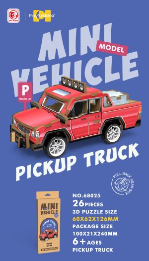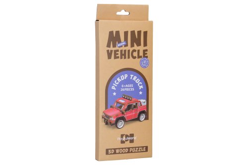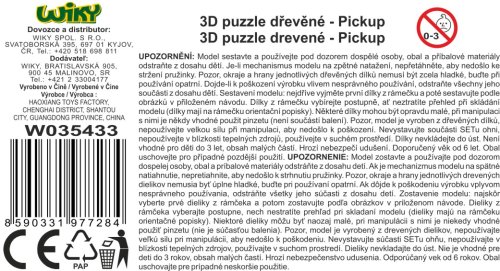 3D puzzle drevené - Pickup. Rozmery 13x6,2x6 cm. 26 dielikov. Na spätné natiahnutie.