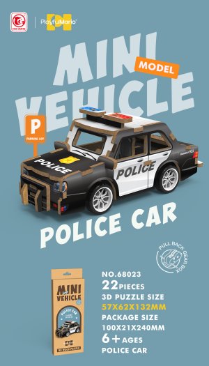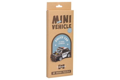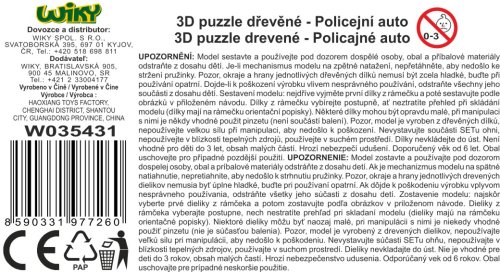 3D puzzle drevené - Policajné auto. Rozmery 13x6,2x5,7 cm. 22 dielikov. Na spätné natiahnutie.