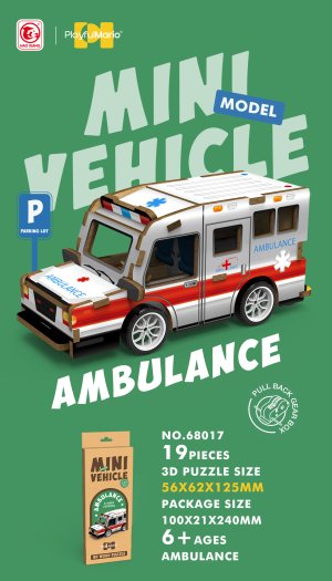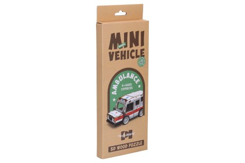 3D puzzle drevené - Sanitka. Rozmery 13x5,6x6,2 cm. 19 dielikov. Na spätné natiahnutie.