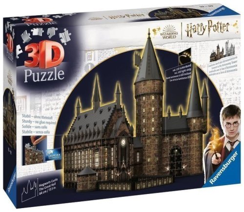 Veľká sieň Rokfortského hradu v nočnej svietiacej edícii! Zažite jedinečnú kombináciu skladania a stavania a vytvorte si doma dokonalý model jednej z najvyužívanejších častí Rokfortského hradu - Veľkej siene a rozsvieťte ho pomocou LED svetla. Ponorte sa do sveta Harryho Pottera a zažite množstvo dobrodružstiev s Harrym a jeho priateľmi. Kvalitné, plastové puzzle s technológiou Easyclick. Bez nutnosti lepenia! Tento model Veľkej siene je možné spojiť s modelom Astronomickej veže do jedného impozantne veľkého modelu Rokfortského hradu. Vďaka osvetleniu model po zotmení pôsobí priamo magickým dojmom. Na osvetlenie si môžete vybrať medzi bielym svetlom a farebnými svetelnými variantmi.