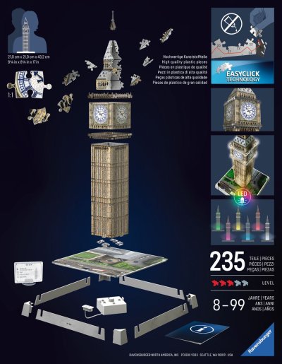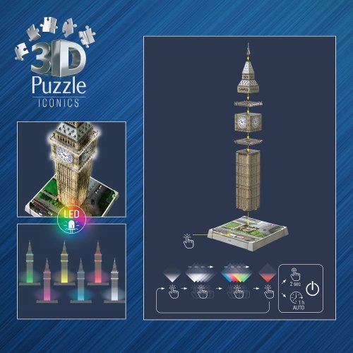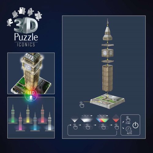 Postavte si osvetlený model Big Ben z Iconics edície zo stabilných plastových dielikov a rozsvieťte ho LED svetlom . Viac možností v nastavení svetla.