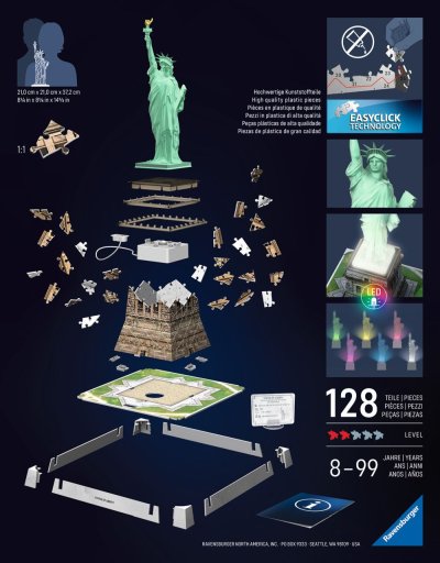 Postavte si osvetlený model Sochy slobody z Iconics edície zo stabilných plastových dielikov a rozsvieťte ho LED svetlom. Viac možností v nastavení svetla.