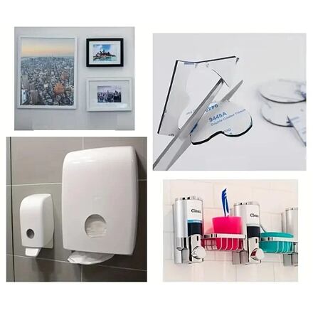 Súprava 3M Fix Plates obsahu 4 kusy obojstranných penových samolepiek rôznych tvarov pre montáž drobných vecí na hladkom povrchu ako sklo, kov, dlažba, dlaždice, latexová farba a pod. Akrylové pásky o hrúbke 1,5 mm využijete v domácnosti či v aute. Ich výhoda je rýchla montáž, dobrá priľnavosť a eliminácia viditeľných spojovacích prvkov ako sú skrutky alebo nity. Samolepky taktiež môžete skrátiť nožnicami podľa potreby. Balenie obsahuje samolepky s rozmermi: 1x .... 25 x 25 mm 1x .... 55 x 42 mm 1x .... priemer 40 mm 1x .... priemer 50 mm Použitie: - Dôkladne očistite a osušte povrch. - Odtrhnite ochrannú fóliu a prilepte pásku k povrchu. - Odstráňte druhý bezpečnostný papier. - Nalepte naň vybranú položku. - Pri použití ťažších vecí použite viac samolepiek.