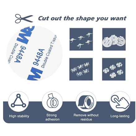 Súprava 3M Fix Plates obsahu 4 kusy obojstranných penových samolepiek rôznych tvarov pre montáž drobných vecí na hladkom povrchu ako sklo, kov, dlažba, dlaždice, latexová farba a pod. Akrylové pásky o hrúbke 1,5 mm využijete v domácnosti či v aute. Ich výhoda je rýchla montáž, dobrá priľnavosť a eliminácia viditeľných spojovacích prvkov ako sú skrutky alebo nity. Samolepky taktiež môžete skrátiť nožnicami podľa potreby. Balenie obsahuje samolepky s rozmermi: 1x .... 25 x 25 mm 1x .... 55 x 42 mm 1x .... priemer 40 mm 1x .... priemer 50 mm Použitie: - Dôkladne očistite a osušte povrch. - Odtrhnite ochrannú fóliu a prilepte pásku k povrchu. - Odstráňte druhý bezpečnostný papier. - Nalepte naň vybranú položku. - Pri použití ťažších vecí použite viac samolepiek.