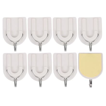 Set 3M hooks C8 obsahuje osem kusov samolepiacich háčikov určených pre hladké povrchy ako dlaždičky, sklo, kov a pod. V domácnosti ich teda využijete napríklad v kúpeľni av kuchyni na zavesenie ľahších vecí a nemusíte tak používať spojovacie prvky ako skrutky či nity. Pred nalepením dôkladne očistite a osušte povrch. - balenie: 8 ks - materiál: plast, kov, akrylové lepidlo - rozmery: 70 x 45 mm - hmotnosť balenia: cca 60 g - zaťaženie: cca 0,5 kg