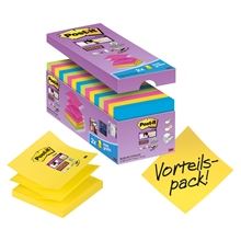 Post-it® Z-bločky silne lepiace, Počet lístkov v bločku: 90 Počet bločkov v balení: 16 (14+2 bločky GRATIS) Farba: mix farieb - stredozemná modrá, svetlo žltá, fuchsi, špargľa Rozmery: 76,0 x 76,0 mm