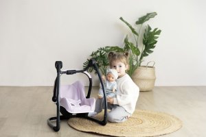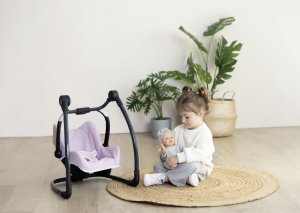 Autosedačka Maxi-Cosi 3 v 1 pre bábiky. Pri zavesení sedačky na konštrukciu je razom hojdačka pre bábiku do veľkosti 42 cm. Otočením konštrukcie získate vysokú jedálenskú stoličku s pultíkom. Rozmery (DxŠxV): 43 x 41 x 72 cm.