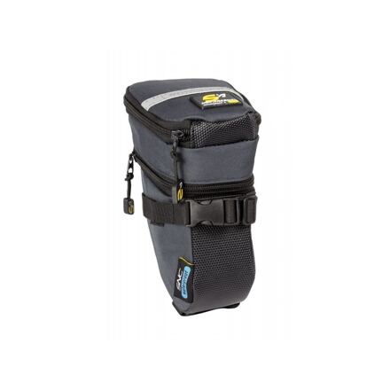 Taška pod sedlo 501 je ideálnou voľbou pre dlhšie výlety alebo viacdenné cyklotúry. Vďaka svojmu maximálnemu rozmeru 22 x 10 x 13 cm a objemu cca 1,2 l do nej totiž pohodlne uložíte nielen základné náradie, náhradnú dušu a lepenie, ale napríklad aj rukavice, okuliare, zloženú vetrovku alebo pláštenku. Objem tašky môžete podľa potreby meniť zapnutím alebo rozopnutím zipsu v strednej časti. Pevná konštrukcia tašky a vodeodolný (nie vodotesný) materiál zaručujú jej dlhú životnosť. Tašku 501 uchytíte ľahko a pevne pomocou pásu s plastovými sponami ku konštrukcii sedla a pásikom na suchý zips k sedlovej rúrke. Na taške je našitý bezpečnostný reflexný 3M pásik pre lepšiu viditeľnosť. Súčasťou balenia je navyše užitočný kratší kompresný popruh zadarmo. Parametre: Rozmer: 17-22 x 6-10 x 7-13 cm Objem: 1-1,2 l Váha: 170 g Uchytenie: pás s plastovou sponou a 1 opasok na suchý zips Materiál: PES s PVC vnútorným záterom