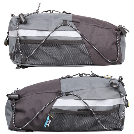 Praktická taška stredného objemu s upínaním k nosiču suchými zipsami. Ideálna taška pre kombináciu s nosičom umiestneným na sedlovej trubke-napr. art. 220, 209. Všeobecne je taška kompatibilná so všetkými nosičmi Sport Arsenal. Bočné gumicuky slúžia k variabilnej zmene objemu tašky /zatiahnutím-povolením/, ale tiež fixujú váš náklad. Praktický popruh na prenášanie na ramene je súčasťou tašky. 3M bezpečnostný reflexný pásik na taške zaručí vašu lepšiu viditeľnosť na cestách.